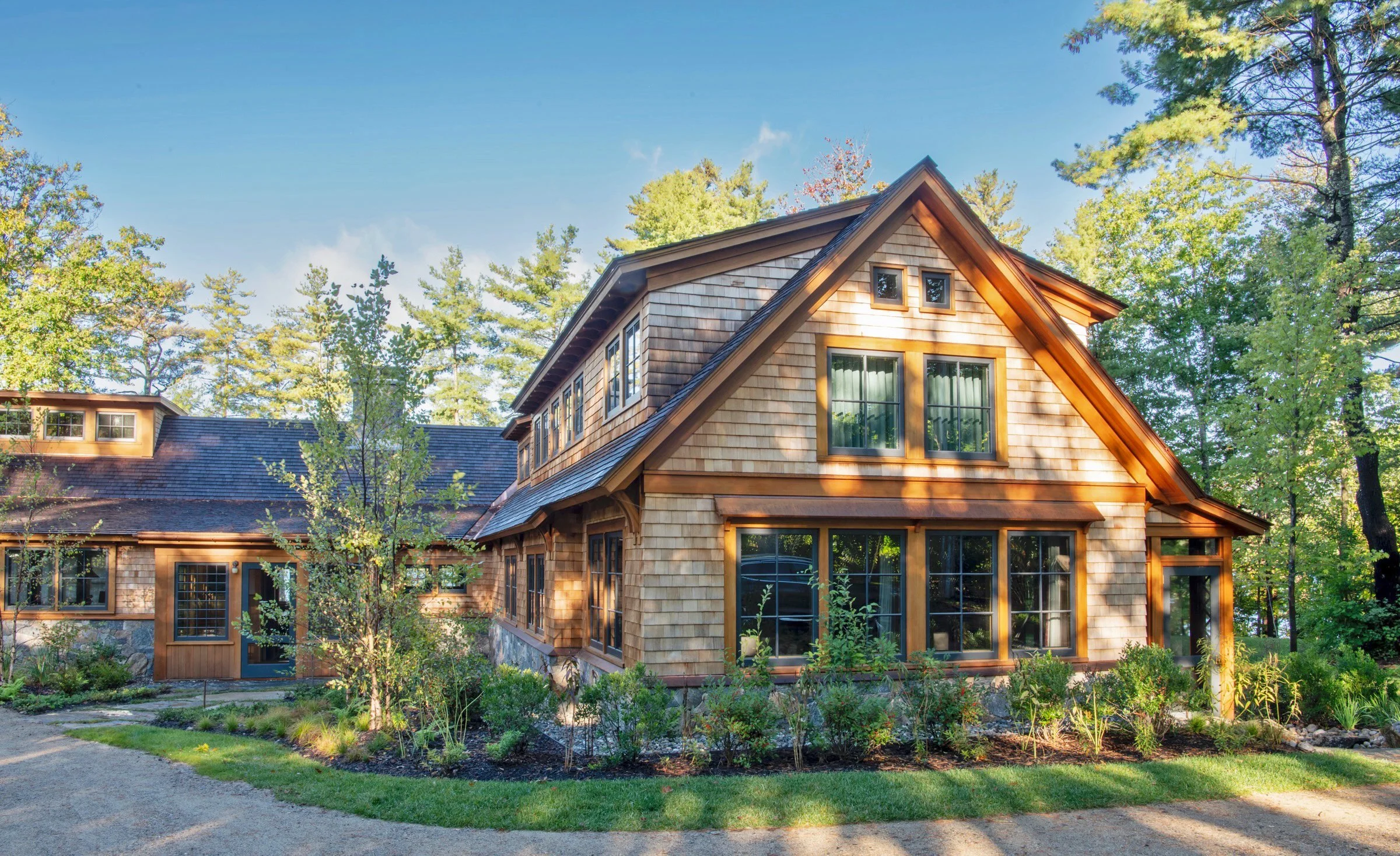 Located on a prominent point in Newbury, the original 1920’s Adirondack style house and boat-house had long been neglected and are now fully restored. The 1980’s additions to the house have been removed and new additions added.