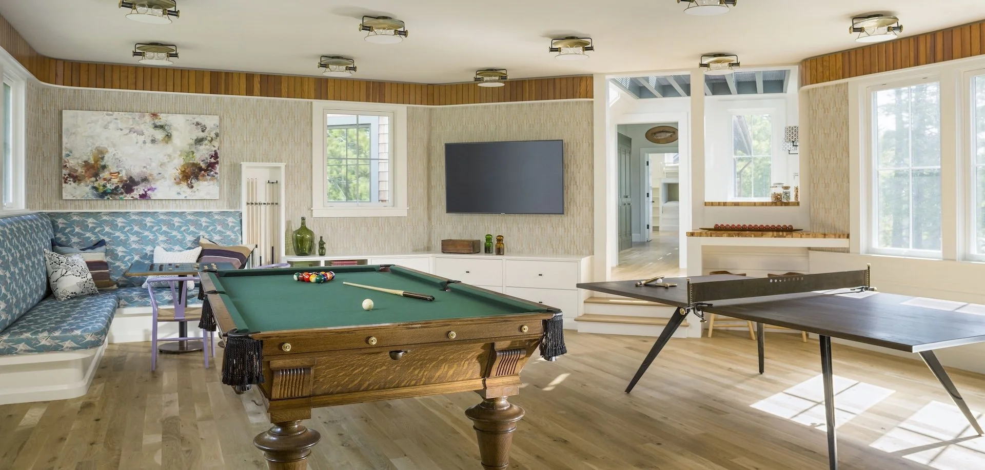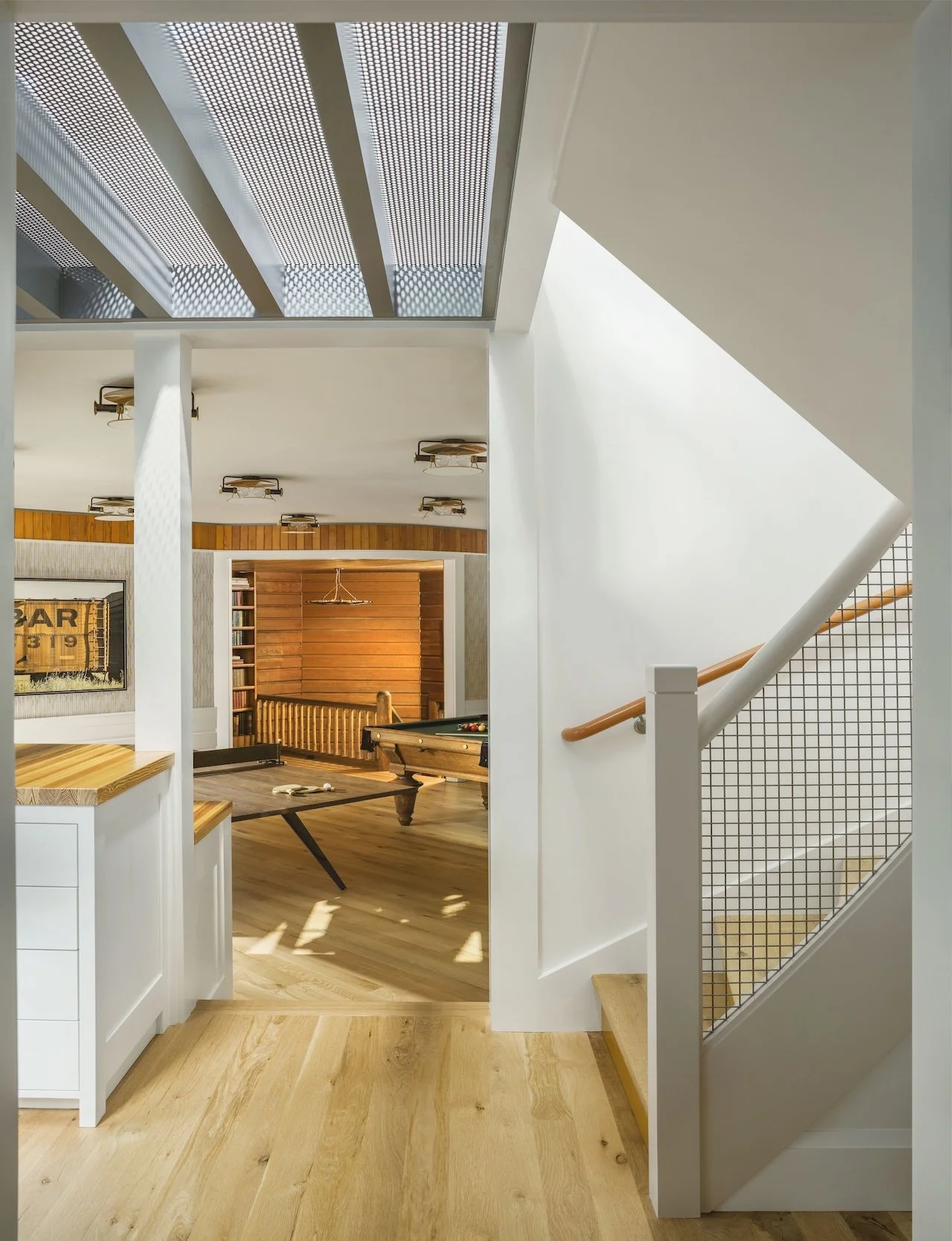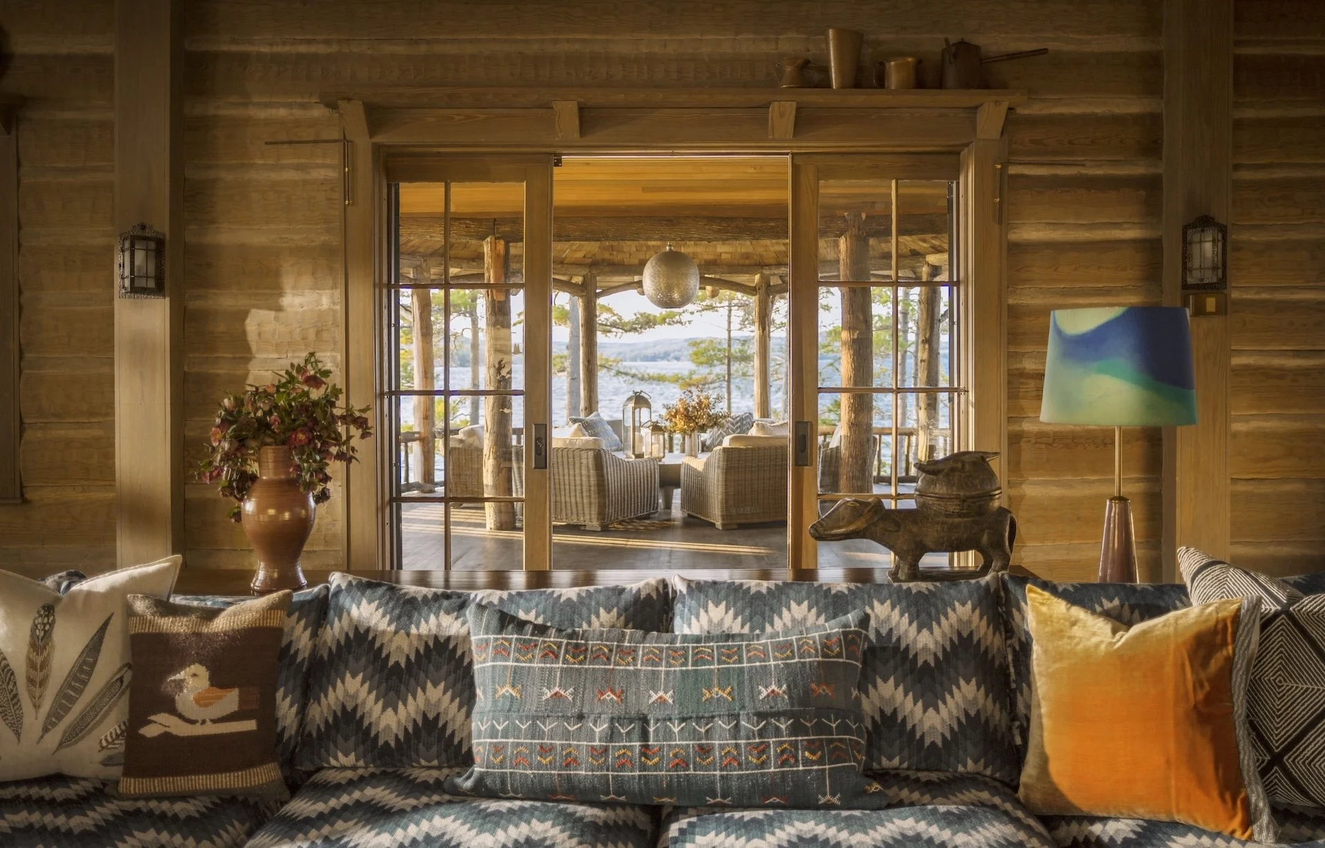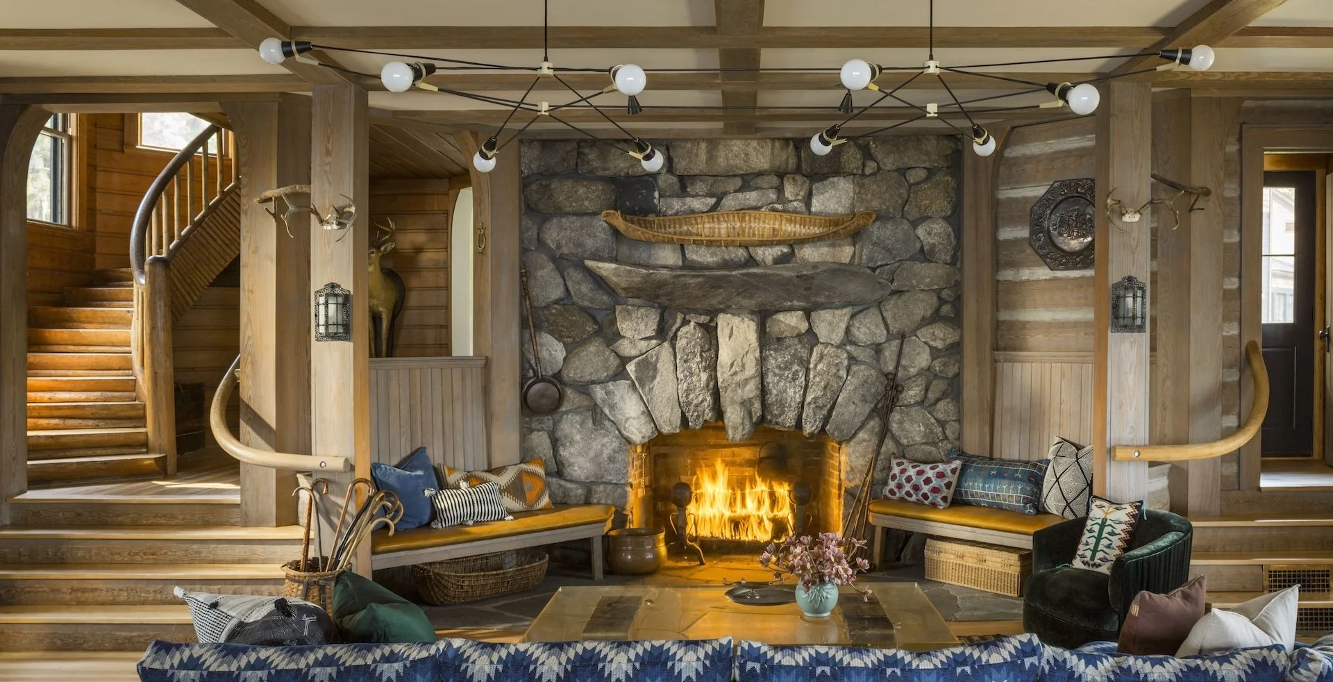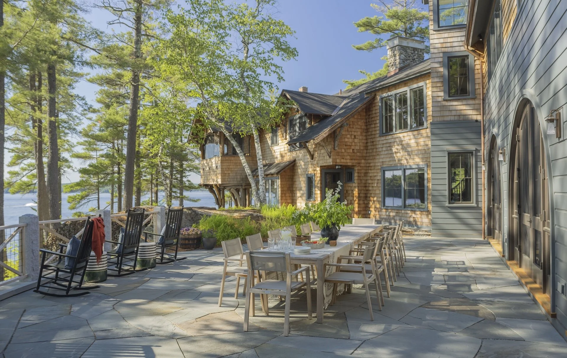 Originally built in the 1920s as a hunting and fishing lodge, this Adirondack-style home sits on a prominent point in Newbury, New Hampshire. The charm of the original structure has been thoughtfully restored, and a contemporary two-story addition replaces a one-story wing added in the 1970s, seamlessly blending old and new. As part of the renovation, a worn boathouse on the water’s edge was reimagined to include a gathering space that connects indoor and outdoor living. Both the house and boathouse take full advantage of breathtaking lake views and the surrounding landscape, creating a perfect retreat for a growing circle of family and friends.